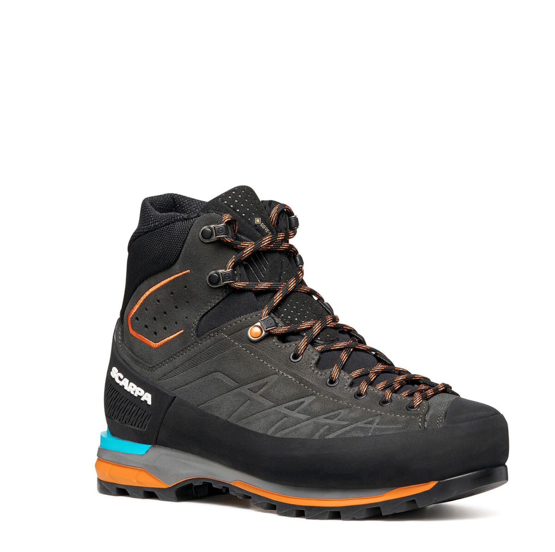 One of Scarpa's lightest weight 3-season mountaineering boots. From day hiking, to backpacking, scrambling, and mid-summer climbs of Mt Rainier...this boot does it all! 1.8mm Oiled Suede Perwanger Nepal Leather upper for durability and water repellency combined with Gore-tex® ePE lining for waterproof breathable performance. Full perimeter rubber and PU rand for increased durability and performance. Sock-Fit XT construction includes a one-piece tongue and ankle collar for a snug fit and reduced bulk. Lacing to-the-toe for a precise performance climbing fit. BAS midsole with lugs that independently adapt to the terrain for increased contact, grip, traction, and stability. Molded heel counter helps contain and stabilize the rear foot. Vibram® BAS pecision rubber outsole for durability. TPU crampon inserts accommodate crampon heel levers. This is a new updated version of one of the best selling 3-season mountaineering boots at our Feathered Friends Seattle Mountaineering Store.