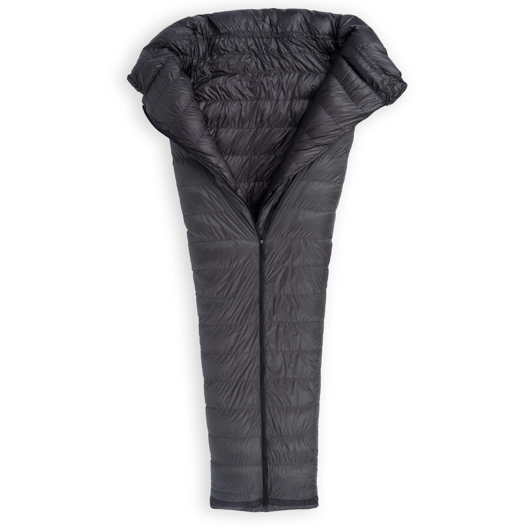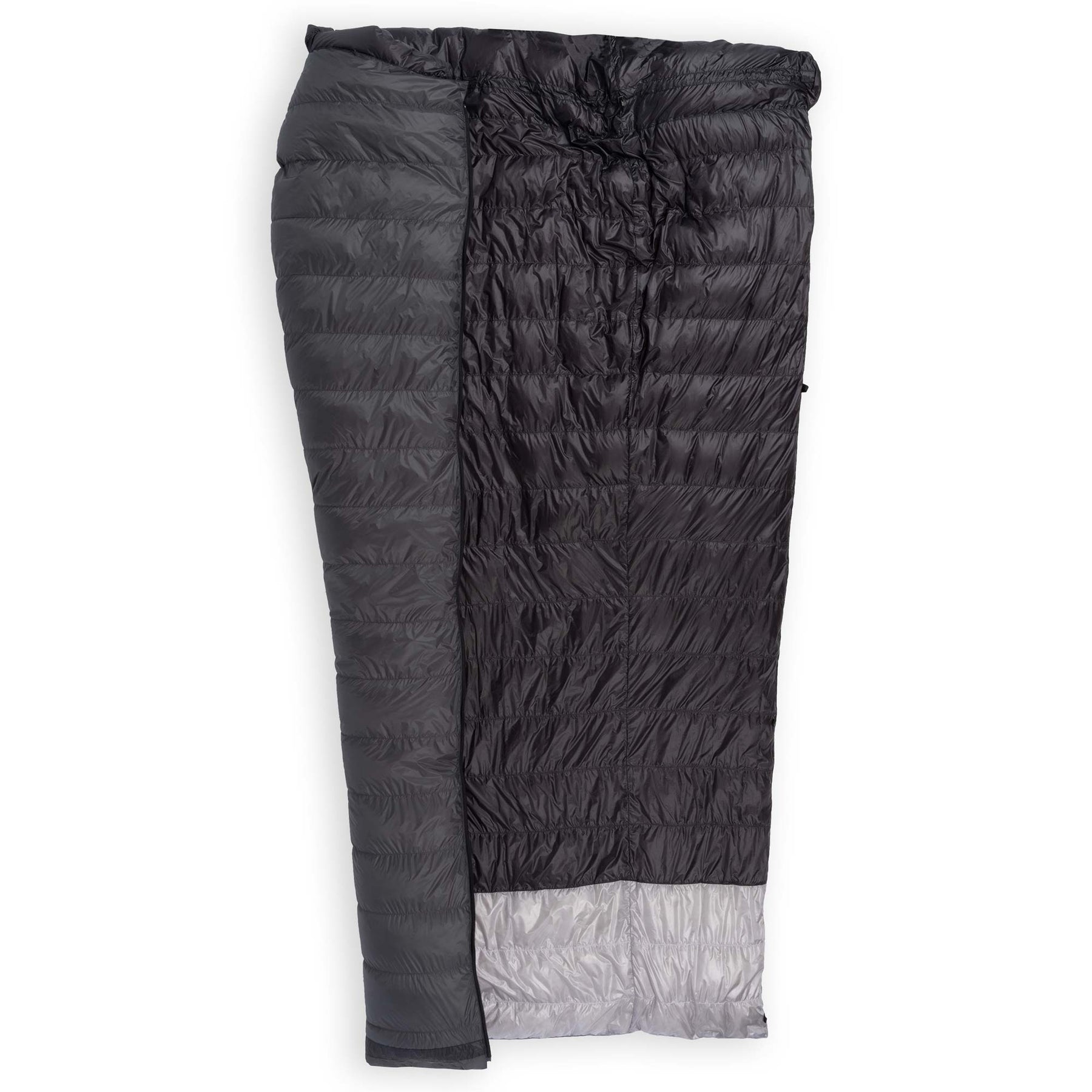 We created the Flicker to achieve maximum comfort and versatility without compromising on weight. Unzipped, it functions as a large quilt on warmer nights and is wide enough to cover two adults in a pinch. The footbox can be cinched tight and partially zipped for greater efficiency on cooler nights. At the bottom end of the temperature rating, the Flicker functions as a full center-zip mummy sleeping bag. With 950+ fill power down and ultralight Pertex® Quantum Pro® fabric, the Flicker series is ideally suited for those chilly summer nights in the alpine or on a thru-hike.