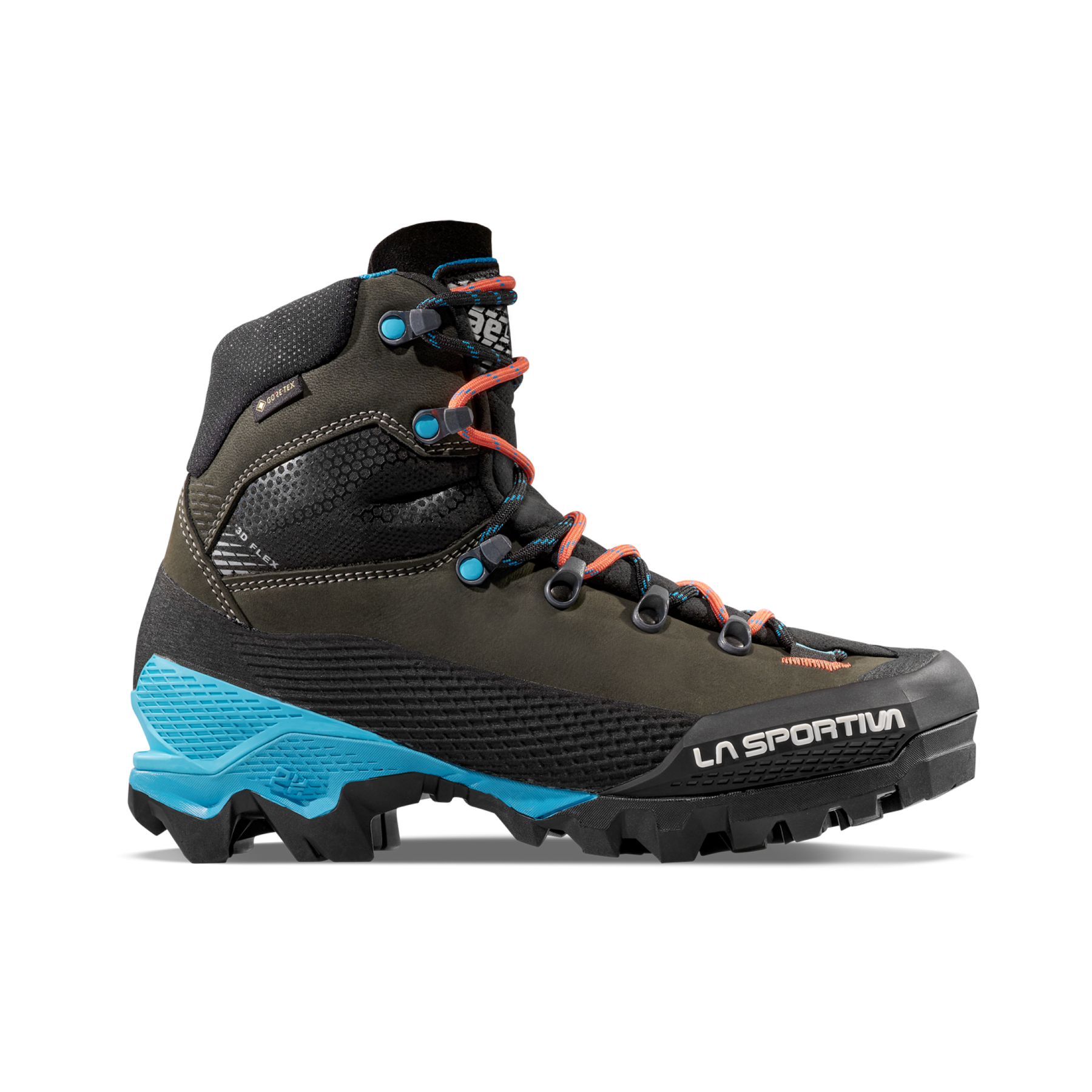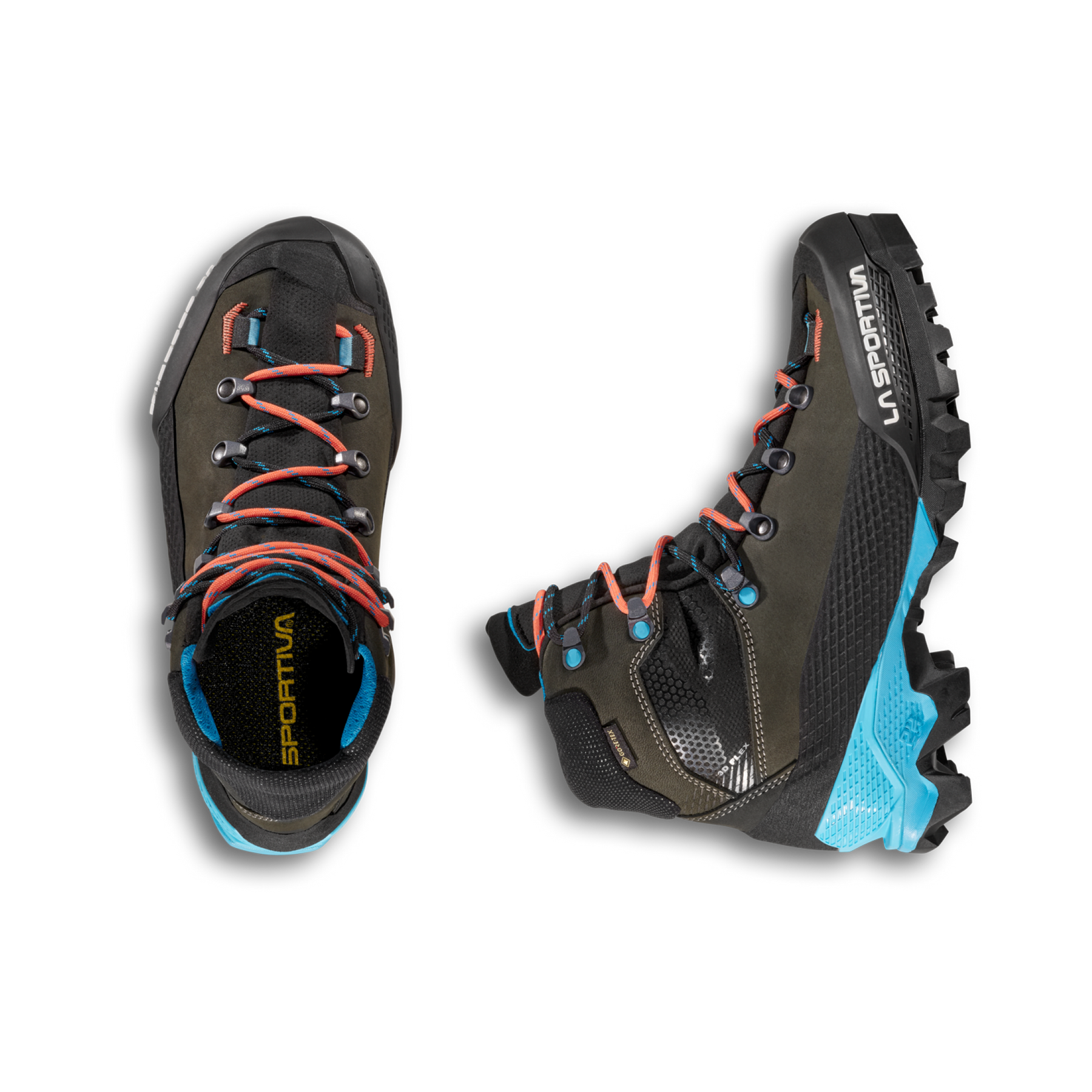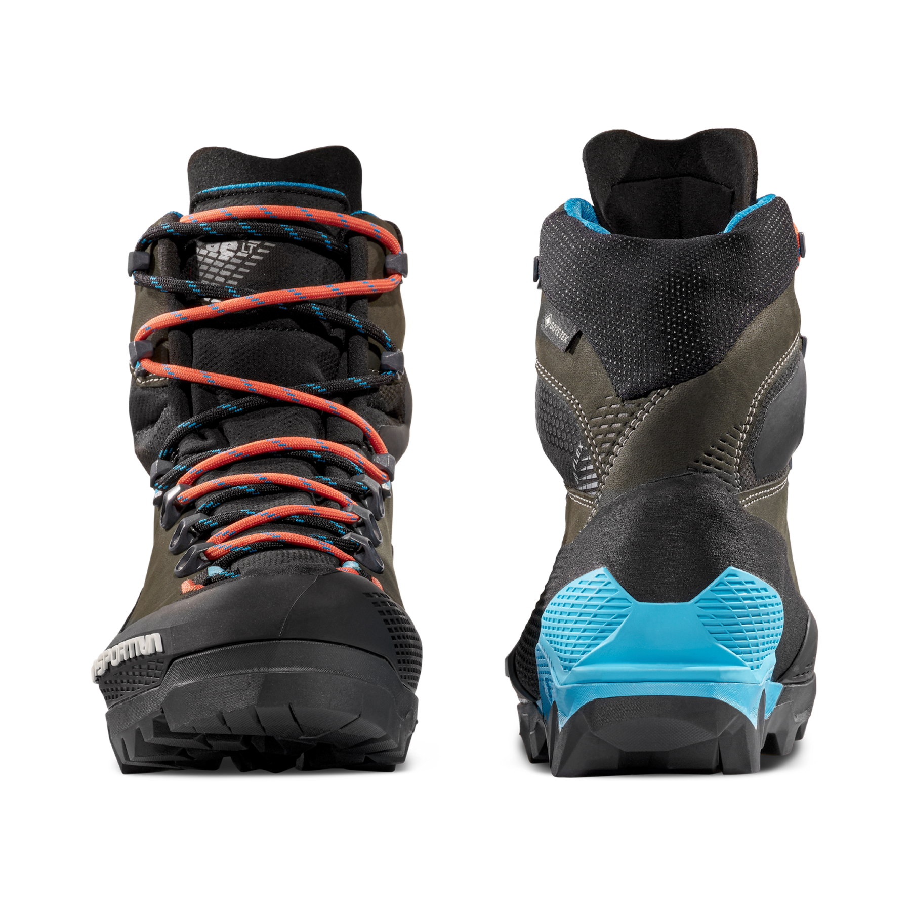 This new Aequilibrium LT GTX mountaineering boot from La Sportiva sets a new standard for ultralight versatility in durably constructed 3-season mountaineering boots.  These are the new state-of-the-art 3-season mountaineering boots from La Sportiva that incorporate their latest advancements in fit, features, materials, and design.  The boot is tailor-made for wild Cascade and Olympic Mountain backcountry adventures involving every possible type of terrain and condition....long river valley approaches, brutal multi-day off-trail route-finding brush-whacking fests, expansive talus and bolder field crossings, snow and glacier travel, ridge running and rock scrambling, and the inevitable moderate technical rock and alpine ice climbing needed to make it to the top of that remote and elusive summit and then back home again to plan your next adventure.  Get the support, stability, and stiffness you need for rugged off-trail travel, kicking steps in the snow, cramponing your way across and up the snow and ice, and edging on and up the rock as you make your way to the top, while still having the flexibility and comfort you need during the hike in and out.