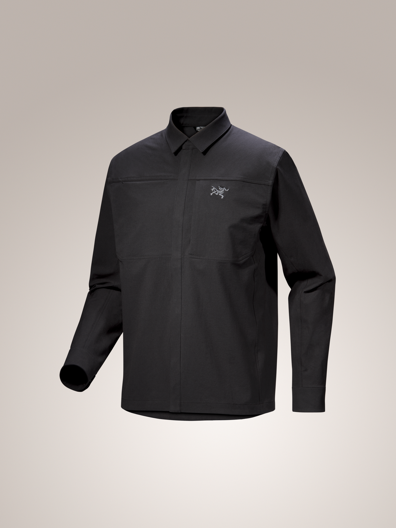 Boulder and climb in style in this Cronin Cotton Overshirt from Arc'teryx. Made with a durable stretch blend of organic cotton and nylon for long-wearing performance. Features include one zippered chest pocket, one drop-on chest pocket, elbow patch reinforcements for added durability, articulated patterning, and bar-tack reinforcements and double-needle top-stitching for increased durability.