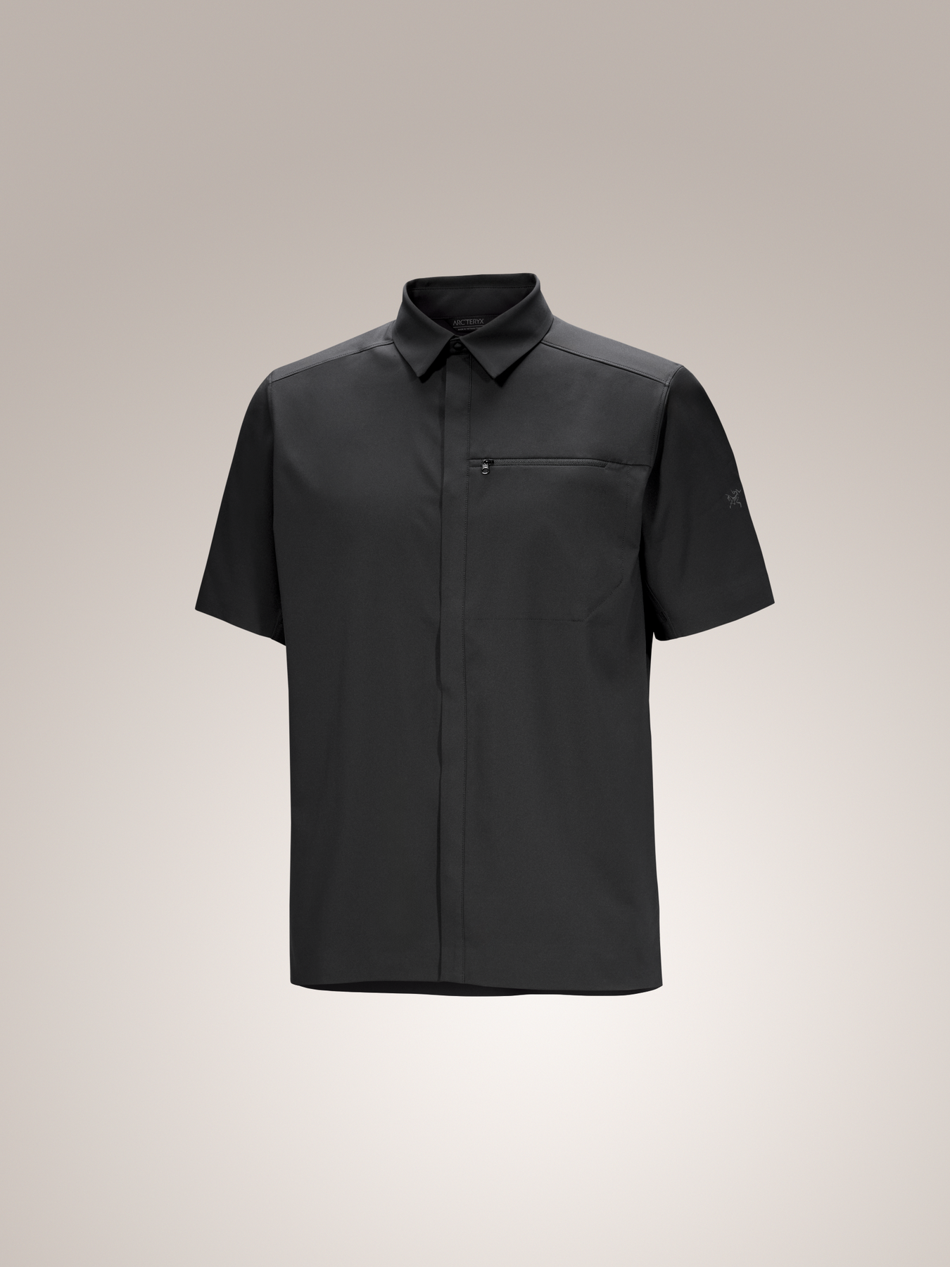 Hike in style with this Skyline Short Sleeve Shirt made with high performance 100% recycled stretch polyester Diem™ fabric with a UPF 50+ rating for protection from the sun. Features include a snap up front closure with a placket, a standard collar, secure zippered chest pocket, and articulated patterning.