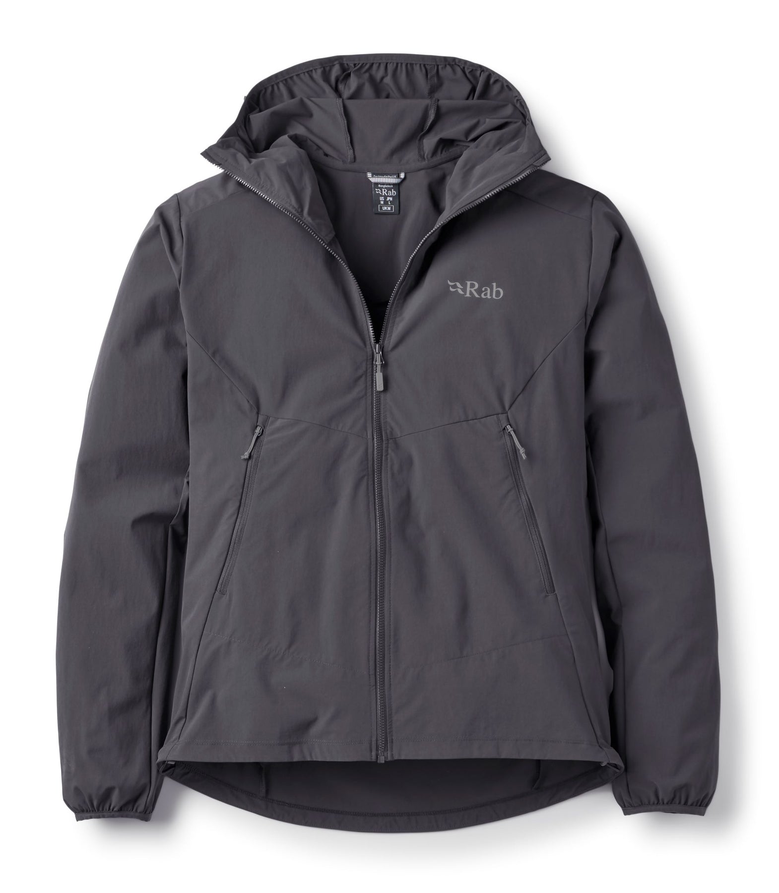 This lightweight softshell hoody from Rab is their best-selling and most versatile all-mountain softshell. An amazingly versatile piece that is the perfect weight layer to put on when you need just a little more warmth and a lightweight short-sleeve or long-sleeve shirt just isn't quite warm enough. Wear this as a windshirt, mid-layer, or outer layer for extra abrasion protection while alpine rock climbing. Put this over a superlight puffy jacket for extra snag and abrasion resistance during cold weather activities when extra protection is needed but wearing a bulky or boardy full-on waterproof hardshell would be undesirable. This jacket could go with you on virtually any mountain outing, anywhere, and any time of the year. The low-profile under helmet hood is perfect to pull off and on to control your temperature as needed, and also works well over a thin skull cap or lightweight visored performance ball cap in colder or more blustery conditions. Wind resistant and highly breathable, this jacket is a great weight for most of your hiking, backpacking, ski touring, and light and fast mountaineering outings. It's also an extremely comfortable item for wearing around town.